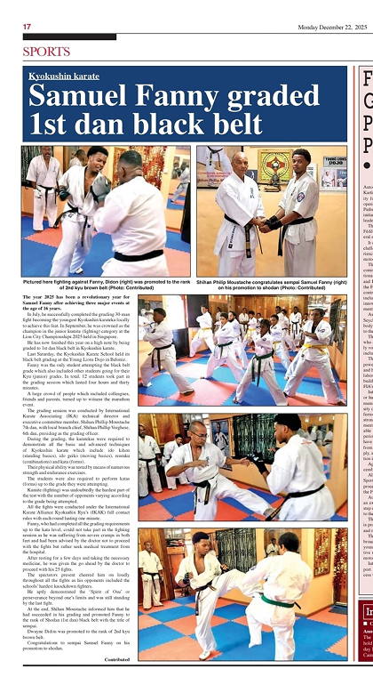 The International Karate Alliance, KyokushinRyu acknowledges the leadership and dedication of Shihan Philip Moustache and Shihan Phillip Verghese in upholding the integrity and quality of Kyokushin grading within the organization.Story inspired by and credited to Seychelles NATION Newspaper